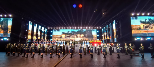 启动仪式在庄严的国歌中拉开帷幕,激昂雄壮的国歌声响起,全体人员整齐列队,面向国旗行注目礼,齐声高唱国歌,用洪亮的歌声表达对祖国和党的崇高敬意。