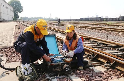 今年年初,中部陆港生产运行部牵头,郑州铁路运输中心具体负责实施改造。通过在道岔和火车上安装道岔控制主机、电动转辙机、车载主机、通讯系统、列车定位系统等硬件设施,将道岔的控制接入网络系统,实现道岔网络远程自动操控转换。而远程控制终端安装在内燃机车上,火车司机作业时,根据调度指令自行编排列车进路。道岔根据进路要求,自动运行到定位或反位,完成自动扳道功能。过去,每扳动1组道岔就需要1名工作人员,而且火车要进行待机。而现在,只需触摸安装在驾驶室内的显示屏操作界面,便能轻松完成道岔的自动操控。