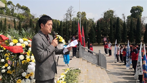 祭扫仪式在庄严的国歌声中拉开帷幕,全体师生肃立默哀。党支部书记、校长陈建军,党支部副书记刘友缘,德育副校长范四平,教学副校长刘凯,党员、教师代表向烈士敬献花篮,表达对英烈崇高敬意和无尽哀思。随后,全体师生,默哀三分钟,这一刻,无声的哀思化作前行的力量。