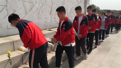 全体同学依次向烈士敬献鲜花,一朵朵献花寄托着对英雄的无限追思。