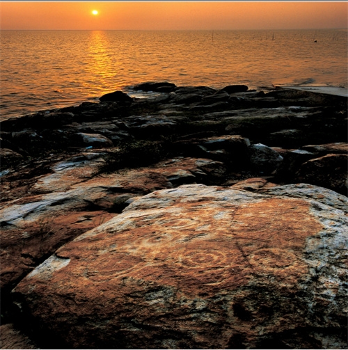 导读:《君山区志》和《洞庭明珠》封面刊登的那张星云图,在君山岛的西部山麓与湖滩交界的地方。西对洞庭,东倚君山岛,距乌龙尾遗址发掘地点大约 50 米。岩画表面,北高南低,最长处 1.98 米,宽1.46 米,共约 2.5 平方米。经数千年风蚀,其画面残存凿痕最深处有