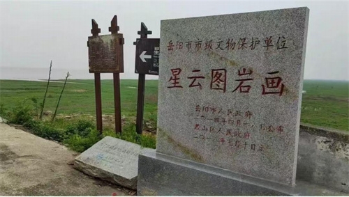 岩画,在君山乌龙尾遗址范围内。乌龙尾这个遗址于1983年发现,是一处新石器时代的遗存,面积有 1 千余平方米。经多次勘探采集到的有磨制石器石斧、石锤和大量的红陶、灰陶及少量白陶和彩陶残片。可辨器形有豆、罐、钵、鼎、杯等。2000 年5月,市文物工作队又进行了科学发掘,开了两个探方,总面积约 20 平方米。发掘时,在3米多深的沙土下出土了灰陶残片和网坠,属距今 7300 年的皂市下层文化。中层出土的黑陶豆、鬲残器和纺轮等,属于距今4500多年前的屈家岭文化。是一处蕴含丰富的新石器时代文化遗址。下层出土的一些网坠,冶炼火候低,但制作精致。说明此时君山的渔猎文化已具有一定的水平,这处遗址的发现为君山岩画提供了佐证。许多专家却认为君山岩画是幅“星云图”,经新华社向国内外发通稿。不久,美国纽约《星岛日报》进行了报道。