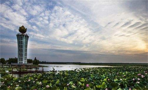 进园区,见荷塔耸峙湖畔,犹擎天巨笔,蘸云为墨,描天绘地。登塔远眺,长江若练,洞庭如烟,尽收眼底;俯察则莲浪千叠,鸥鹭翔集,舟隐花间。此乃旧江灯塔遗址,今虽沧海桑田,犹存遗韵。