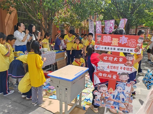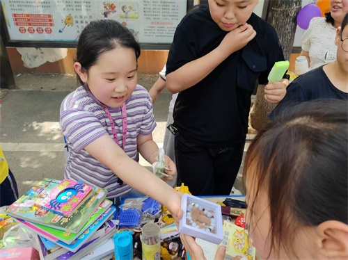活动现场,阳光透过操场四周的樟树,在摆满摊位的空地上洒下斑驳光影,各班精心布置的摊位错落有致,创意十足,商品琳琅满目,宛如一个个小型 “百货市场”。同学们将自己闲置的书籍、文具、玩具、手工艺品等纷纷拿出来义卖,每一件物品都承载着满满的心意。摊位前,“小卖家” 们使出浑身解数,有的大声吆喝,有的热情介绍商品特色,还有的推出各种优惠活动吸引顾客。“走过路过不要错过”,“好货不是天天有,该出手时就出手”,此起彼伏的叫卖声,就像进入了一个繁忙的集市,精美的手工艺品吸引了众多同学驻足欣赏,有趣的书籍和玩具也备受欢迎,整个校园洋溢着浓厚的“淘宝”氛围。