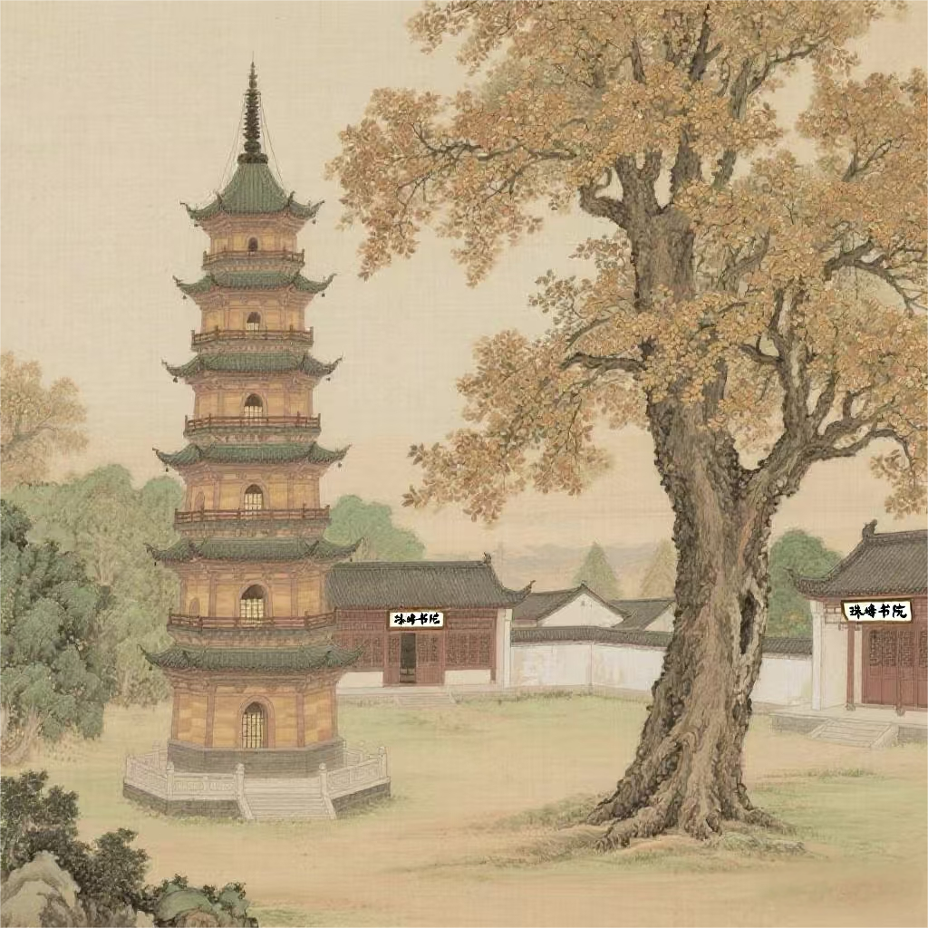 导读:天井藏幽,洞庭之畔;珠峰隐秀,文脉之源。溯乎清道光间,金公潜谷,怀教化之志,筑书院于斯山。青砖黛瓦,曾映书声琅琅;明窗净几,惯听论道喧喧。惜乎烽火骤起,故宇遭毁,唯余断碣残垣,伴千年银杏立苍烟。 观夫古银杏者,冠盖如云,荫蔽百亩。盘根错节,