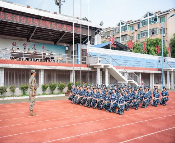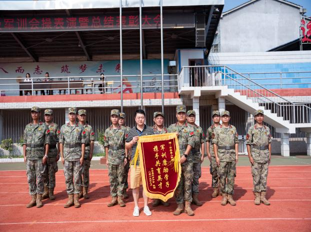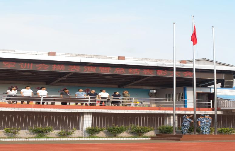 9月8号上午,军训汇操表演暨表彰大会在校田径场举行。各连队方阵步伐整齐、气势如虹,依次通过主席台接受检阅。张谋副校长宣读了表彰决定,对军训中表现突出的先进集体和个人予以嘉奖,并鼓励全体同学以他们为榜样,在未来的学习生活中不断追求卓越。随后,刘谋副校长代表学校向承训教官代表授予“军训育人楷模”锦旗,感谢他们的辛勤付出。