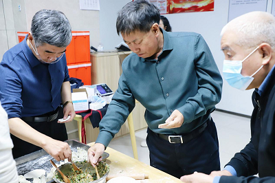 活动现场,面皮、馅料等材料早已准备妥当。大家围坐在桌旁,褪去工作中的严肃,分工协作、默契配合,瞬间变身“厨神”和“创意大师”。从擀皮到捏褶,从调馅到包馅,动作娴熟又充满趣味,每一个环节都充满了合作的乐趣。领导与员工们亲切互动,交流包饺子技巧,时而分享生活趣事,时而探讨工作心得,现场氛围热烈而温馨。一个个形态各异的饺子承载着团圆的祝福,也传递着集团领导对员工的关怀,让大家在忙碌的工作之余感受到了“家”的温暖。面粉沾上了鼻尖,笑声回荡在餐厅,平日里严谨认真的领导和同事们此刻流露出的专注与欢乐,恰似冬日暖阳。在整个过程中,大家包进去的不仅是鲜美的馅料,更是彼此的默契与协作,是如同家人般的温馨情谊。