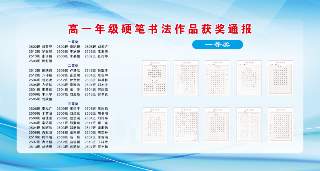 笔墨书华章,竞逐展风采。高一年级以此次竞赛为契机,让学生在竞技比拼中感受文字之美,在切磋交流中积累知识之实,为高中学习生涯写下生动的注脚。愿同学们此后继续以笔墨为舟,以勤学为桨,在学海中乘风破浪,扬帆远航!