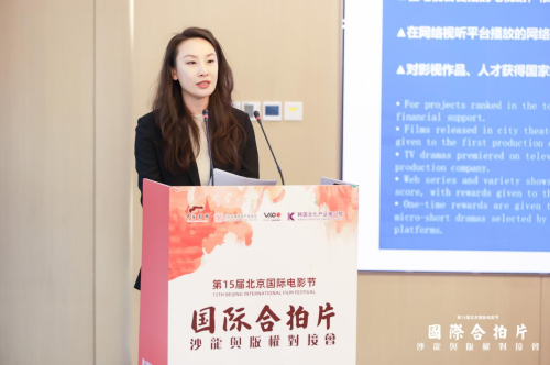会议紧扣“两区”建设政策与北京市新视听改革创新方向,为中外企业提供合作落地的政策支撑。现场解读影视产业扶持政策,强调对合拍项目资金补贴、人才引进、拍摄取景等环节的专项支持;怀柔区文化产业发展促进中心副主任赵曌表示,怀柔将依托“一城两都”三核驱动优势,为中外企业落户怀柔提供“一条龙”服务支持,欢迎更多的企业走进怀柔、走进影都。