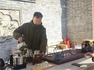 文化节特设茶艺体验区,茶艺师以觉山书院井水冲泡香茗,晶莹茶汤与园内百年魏紫牡丹的沉郁花香交织氤氲。游客围坐案前,轻抿茶汤,在古琴雅韵中感受“山水灵丘”的悠然底色。觉山书院井水甘冽清醇,承载千年人文积淀,一杯香茗不仅是味觉享受,更传递着“以茶会友、以文化人”的温情联结。